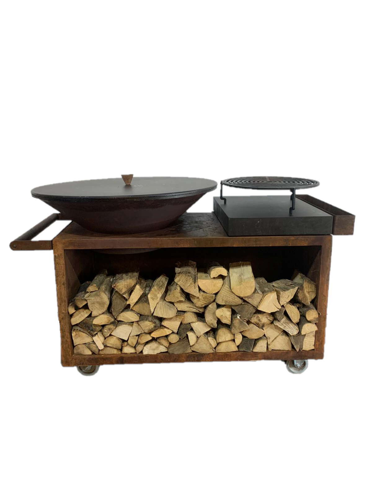 Het robuuste ontwerp van de OFYR combineert functionaliteit met een moderne, industriële uitstraling, ideaal voor tuinfeesten, barbecues en culinaire evenementen. Zo kun je veilig en comfortabel koken terwijl je gasten geniet van de live-cooking ervaring.