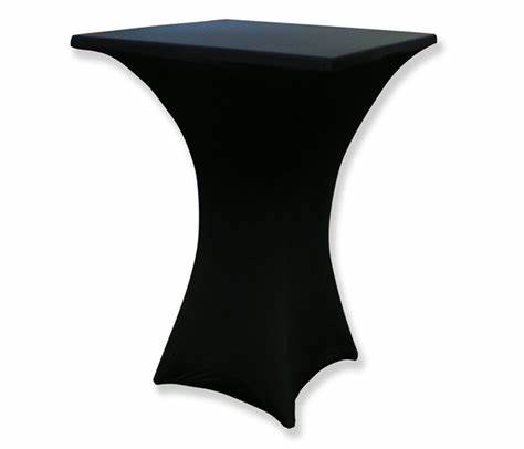 Een strakke zwarte stretchrok met bijpassende tophoes, speciaal ontworpen voor statafels van 80x80 cm. Het elastische materiaal sluit nauw om de tafel en zorgt voor een nette afwerking zonder plooien. De tophoes beschermt het tafelblad en maakt de presentatie compleet. Ideaal voor evenementen waar een moderne en stijlvolle uitstraling gewenst is.